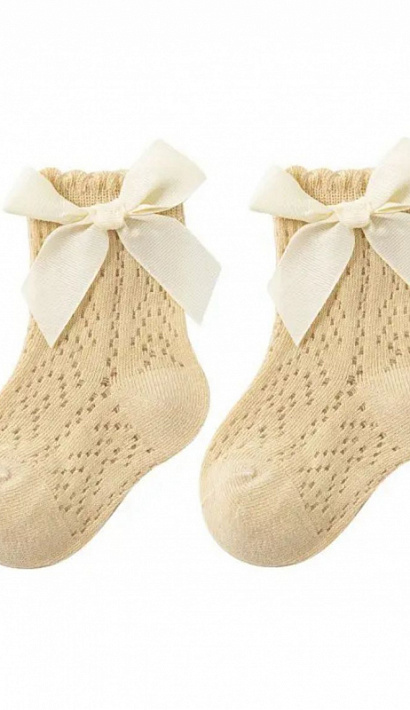 Детские вязаные носки с бантом кремовые