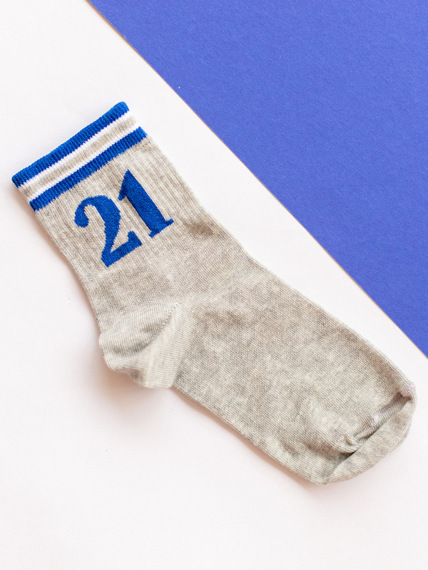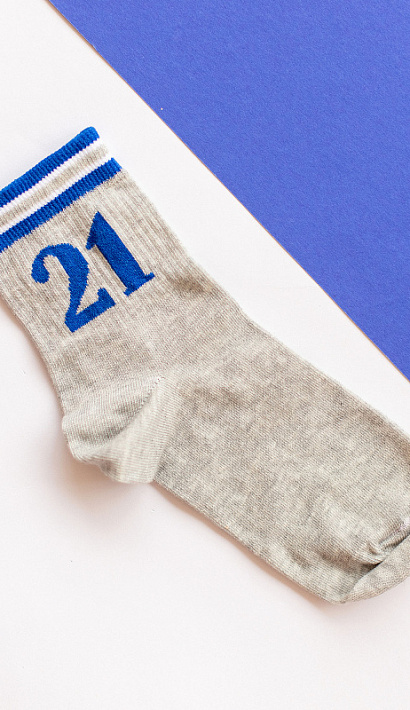 Носки спортивные детские серые с рисунком в виде цифр и двумя синими полосками сверху. Носки имеют стильный дизайн, а еще очень удобны и неприхотливы в уходе. Если вы ищете высококачественные и прочные носки для вашего ребенка, то носки batik идеально подойдут вам.