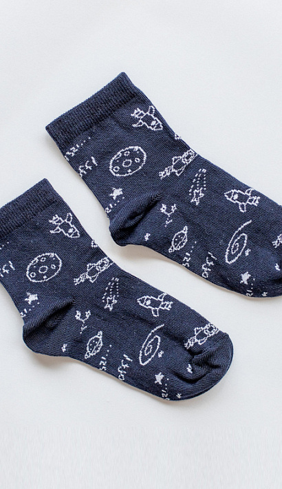 Детские носки черные с двубортной резинкой, паголенок классический, компьютерный рисунок в виде космических объектов. Это замечательный подарок для ребенка, увлеченного темой космоса. Отличный выбор для повседневной носки!