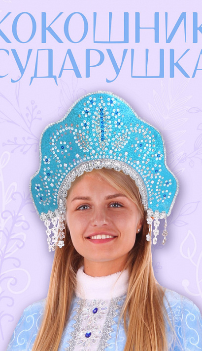 Кокошник детский Сударушка подойдет к костюму Снегурочки на Новый год. Роскошный и блестящий кокошник голубого цвета понравится любой девочки и подарит праздничное настроение. Надевается на голову с помощью резинки.