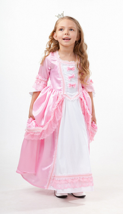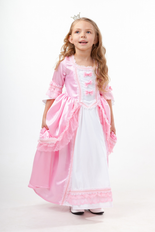 С карнавальным костюмом Принцесса любая девочка сможет почувствовать себя героиней романтичной сказки с хорошим концом. Наряд в гармоничных бело-розовых тонах выглядит как самое настоящее бальное платье принцессы. В таком костюме можно отправиться на новогодний бал-маскарад, отметить день рождения или сыграть принцессу в спектакле. Комплект костюма состоит из платья и короны.