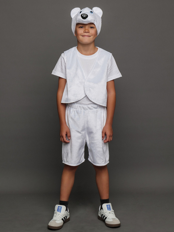 Современным детям, конечно же, знаком этот персонаж. А песня «Ложкой снег мешая» поется на каждый Новый год в детских садах. Карнавальный костюм Медведь Умка белый непременно станет удачным приобретением для родителей мальчиков 4-6 лет. В нем можно отправиться на новогодний утренник, елку или принять участие в костюмированной постановке. Комплектация образа Умки включает в себя шортики, жилетку и шапку.