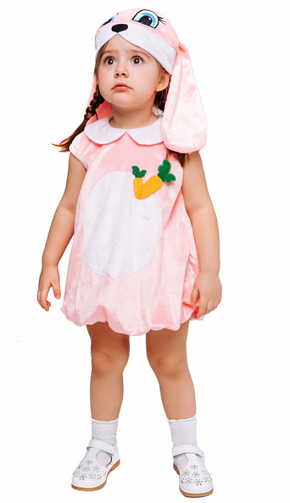 В образе Зайки наши замечательные девочки смогут побывать на утреннике, поучаствовать в постановке интересного номера или сходить в гости на праздник. Нежно-розовый наряд Зайки обязательно понравится девочке, и она захочет надеть его еще раз. Костюм представляет собой короткое платьице и шапочку. Размер рассчитан на девочку 3-5 лет.