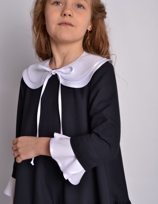 Съемные отложной белый воротничок на завязках и манжеты- воланы входят в стоимость.