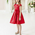 Нарядное атласное платье красного цвета с пышной юбкой из сатина. Короткий рукав, спереди бант. Подк...