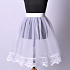 Красивый школьный подъюбник на мягкой резинке для торжественных мероприятий. Два слоя фатина для большей пышности. Цвет белый. Украшен широким кружевом на сетке по подолу.