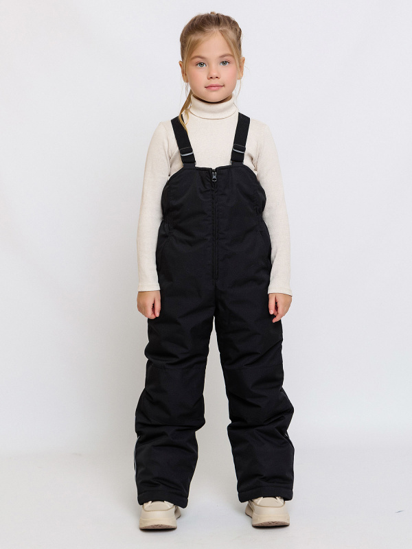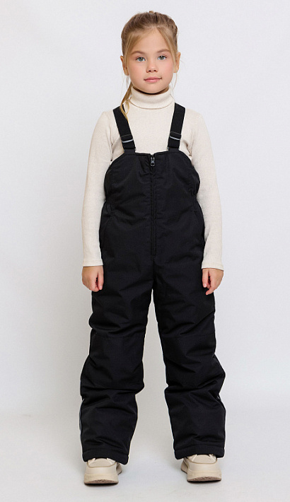 Полукомбинезон детский Кейр черный - непромокаемая и тёплая модель на зиму. Подкладка из гладкой ткани. В удобные карманы можно положить все необходимые мелочи. Брюки регулируются по длине благодаря манжетам-отворотам. Бретели из эластичной тесьмы, длина легко регулируется. Анатомический крой на уровне колена выполнен с вытачками и подрезами для свободы движения.