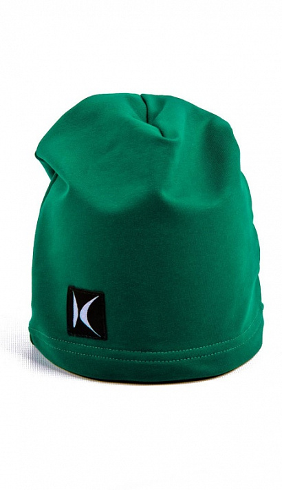 Шапка одинарная. Сбоку декоративный элемент. Изготовлена из футера с эластаном, без начеса.