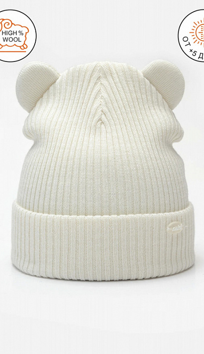 Зимняя детская шапка из полушерстяной пряжи российского производства. Модель – унисекс, подойдет как для девочки, так и для мальчика. Шапочка двойная, без подкладки и утеплителя. Декорирована забавными ушками. За счет отворота создается дополнительная защита. Рекомендованный температурный режим от +5С до -15С (температурный режим зависит от климатических условий региона, степени активности ребенка).