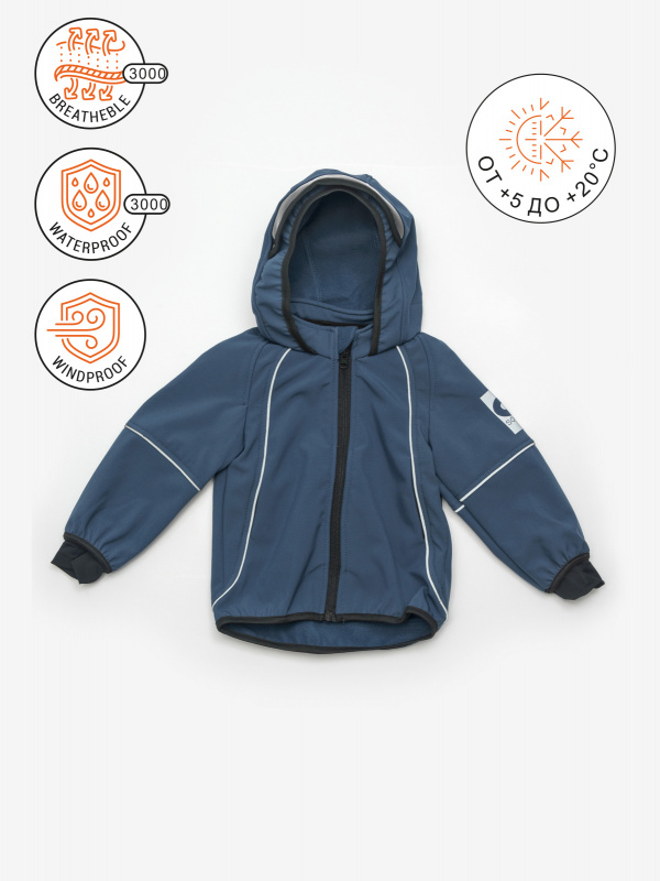 Удобная ветровка для мальчика, подростка и мужчины из материала Softshell (Софтшелл) станет универсальным вариантом как для городских условий, так и для активного отдыха в осенне-весенний период, а также прохладные дни лета. Softshell - это практичный, тактильно мягкий материал, который надежно защитит от проникновения ветра и влаги, с мембранный слоем 3000/3000. Ветровка прямого кроя. Низ рукава окантован резинкой. Втачной капюшон. Куртка смотрится модно и молодежно, отличная альтернатива толстовке из плотного футера. Два потайных кармана. Светоотражающие элементы для пассивной защиты. Рекомендованный температурный режим +5С до +20С (необходимо учитывать нижние слои одежды, степень активности ребенка, климатические условия региона).